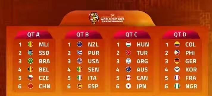 中国女篮被分在A组,同组的有比利时、巴西、捷克、马里和南苏丹。 比利时队因为拿了女篮欧洲杯冠军,已经锁定了世界杯资格,所以她们在A组其实是“占位不占坑”。 对中国队来说,真正的对手就是巴西、捷克这几支。 世界排名第四的中国女篮,打马里和南苏丹这种队伍,基本是稳拿胜局。