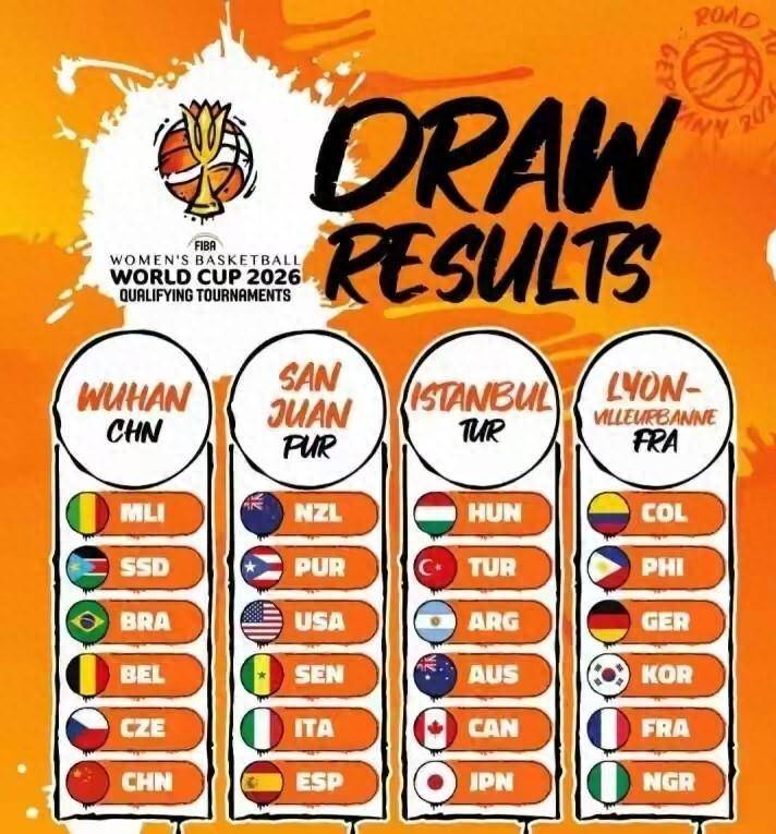 女篮世界杯预选赛的抽签仪式昨天凌晨刚结束,24支球队被分成了四个小组。 比赛定在2026年3月11日到17日打,四个赛区分别是土耳其的伊斯坦布尔、法国的里昂、波多黎各的圣胡安,还有咱们中国的武汉。 武汉这回可算是主场作战,中国女篮不用倒时差,也不用适应场地,优势明摆着。