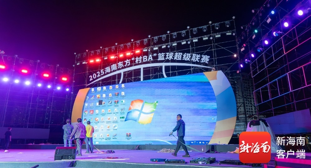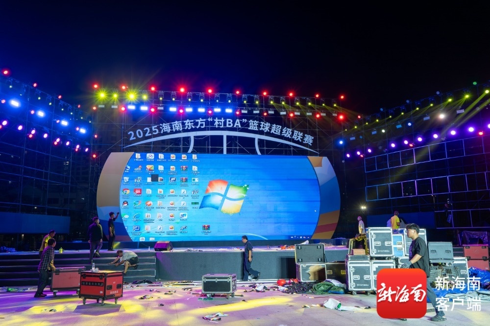 “今年的主舞台相较于去年更加宏伟、雅致。特别是灯光氛围较往年更为浓郁,营造出强烈的视觉冲击力,与开幕式节目《激光秀》相得益彰。”海南东方“村BA”主舞台搭建方现场负责人龚伟表示,此次主舞台设计融入了大量当地特色元素,通过巧妙的布局和装饰,将海南东方的文化底蕴展现得淋漓尽致。