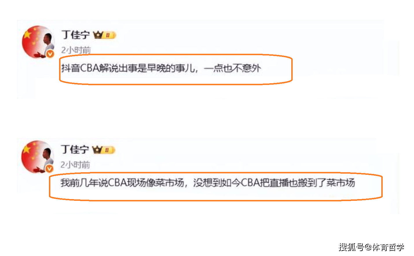 丁佳宁是这样说道:把CBA直播搬到了菜市场,可以说,抖音CBA解说出事是早晚的事,一点也不会感到意外……