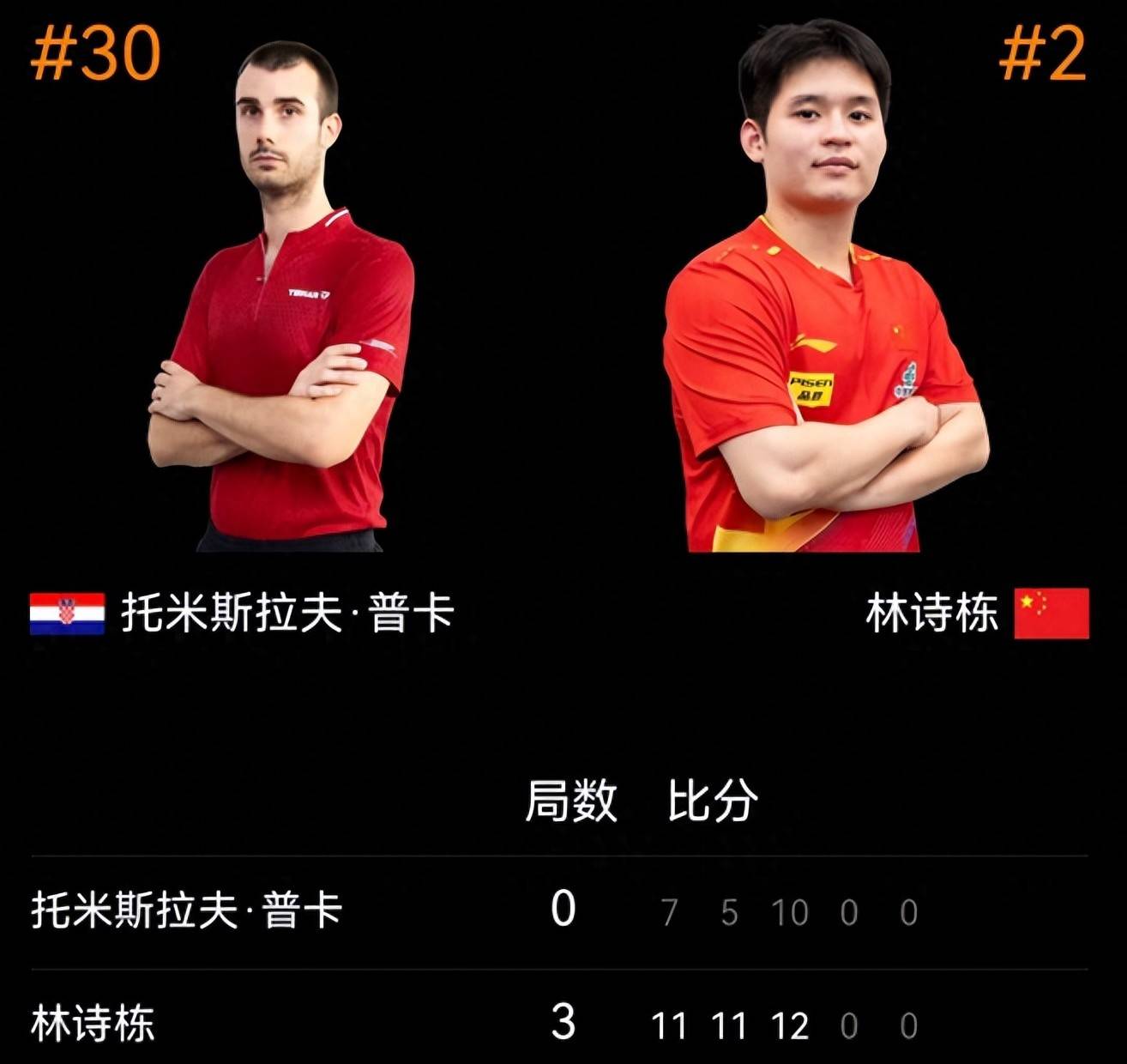 林诗栋的比赛一开始便展现了他的冷静与果敢。在首局,双方战至6平时,林诗栋没有任何犹豫,果断将进攻目标锁定在对手的中间位置,通过犀利的抢攻打破了僵局。第二局,他凭借反手的快速撕球以及精准的落点变化,一举打出5-1的开局,牢牢把控了比赛节奏。数据显示,第二局林诗栋的进攻成功率超过了60%,这一数据也让普卡尔在攻防之间陷入了被动,毫无还手之力。