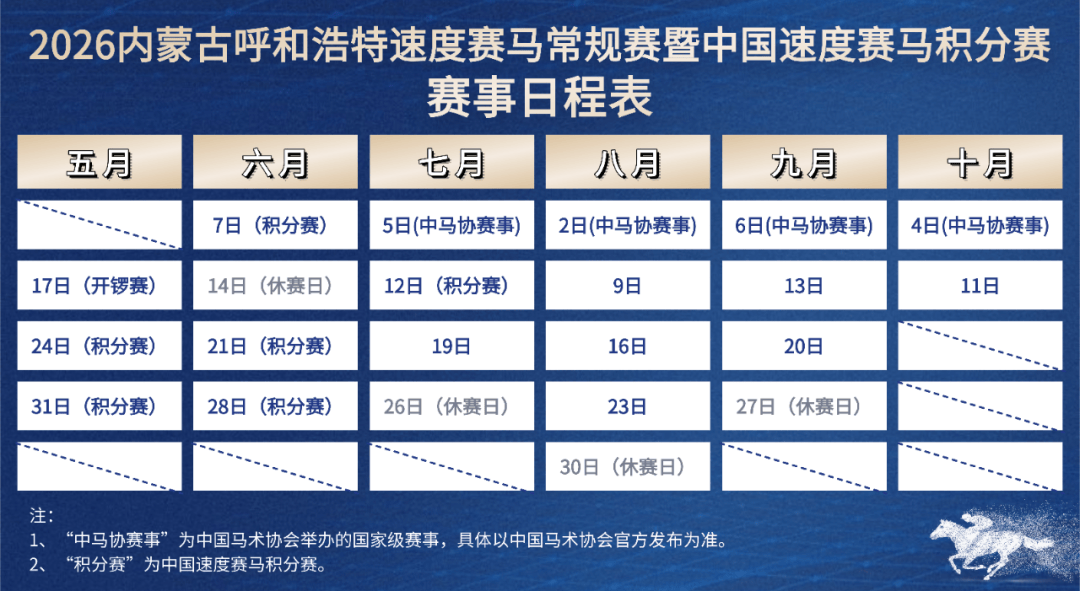 2026年1月8日前,需缴纳闸位费以确认参赛名额(14个闸位/场),2026年3月20前,提交并确认参赛马匹信息。